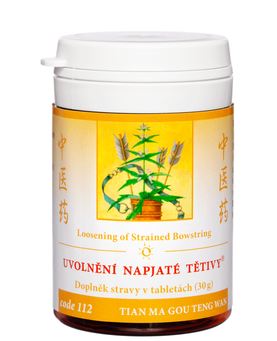 Popis dle TCM - Jedná se o modifikaci originální tradiční čínské bylinné směsi TIAN MA GOU TENG WAN, která je upravena na dnešní poměry. Všechny tyto nemoci jsou způsobeny případnou nedostatečností ledvinového a jaterního jinu SHEN/GAN YIN XU, který umožní jaternímu jangu GAN YANG SHI se vzedmout a rozhýbat vnitřní jaterní vítr GAN NEI FENG. Když je jaterní krev nedostatečná GAN XUE XU, nemůže řádně vyživit a zvlhčit svaly a šlachy. Když jsou svaly a šlachy suché, objeví se křeče a záškuby. Všechny nepřirozené pohyby těla nebo částí těla, jako jsou záškuby, tiky, stáčení očí či jazyka, jsou projevem jaterního větru GAN NEI FENG. Jedná se vždy o udržování rovnováhy mezi jinovými tekutinami a jangovou energií. Když jsou jinové tekutiny oslabené YIN XU, tak se tělo dostane do nerovnováhy. Je to jako v přírodě, když není dostatek vody, aby hasila oheň, tak oheň se rozhoří a jeho plameny šlehají vysoko. V našem případě jinová voda YIN XU neovládá jangový oheň YANG HUO, který stoupá do hlavy a způsobuje bolesti hlavy, motolice, závratě, rozostřené vidění, pískání v uších, návaly horka do hlavy, nespavost, spánek rušený nepříjemnými sny, tiky, podrážděnost, nervozitu, mravenčení a brnění v končetinách, necitlivost končetin, křeče v končetinách nebo dokonce až ochrnutí končetin (hemiplegie). Spousta bylin v této směsi má vliv na snížení vysokého krevního tlaku, cholesterolu, nadváhy a z nich vyplývajících otoků kolem kotníků. Tato směs čistí horko z jater GAN RE, zklidňuje mysl SHEN, vylučuje vnitřní vítr NEI FENG a vyživuje játra GAN a ledviny SHEN.